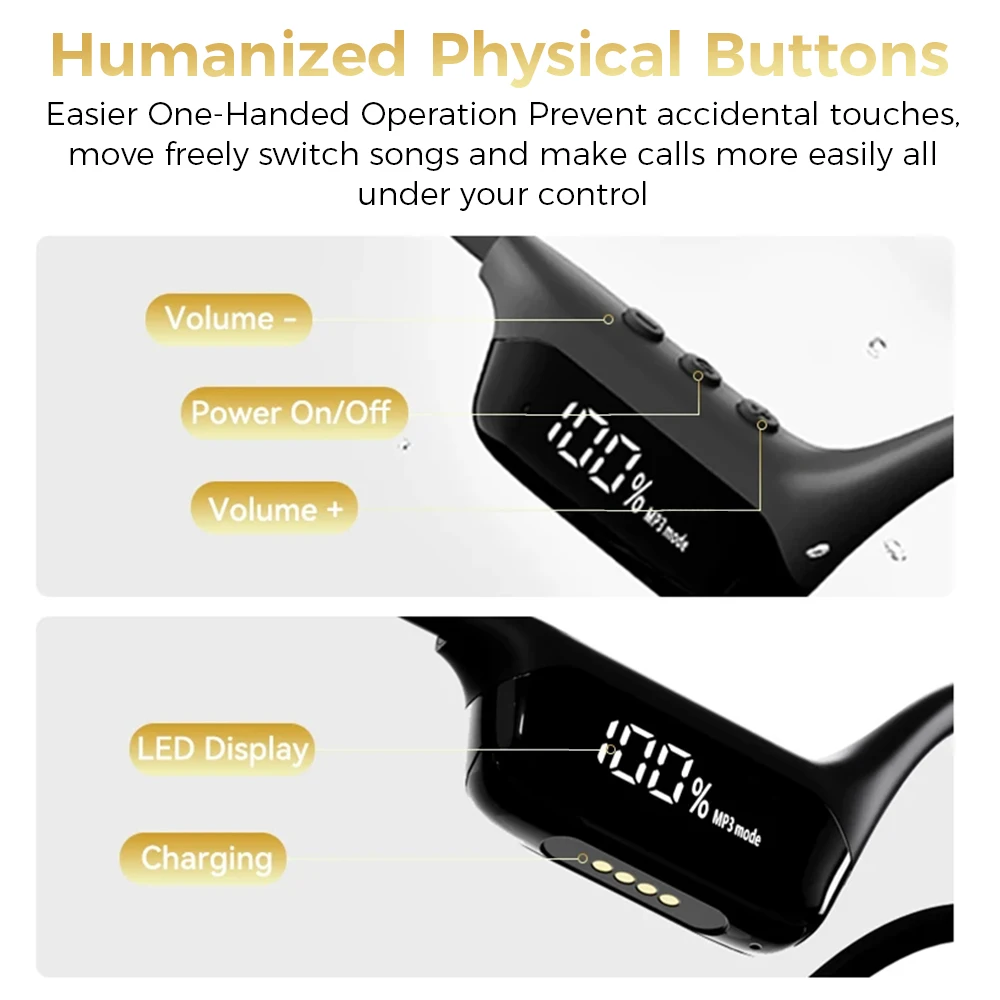 Bone conduction technology: Experience a unique listening experience with open-ear headphones. Equipped with bone conduction technology, these headphones deliver clear, high-quality sound without blocking your ears.