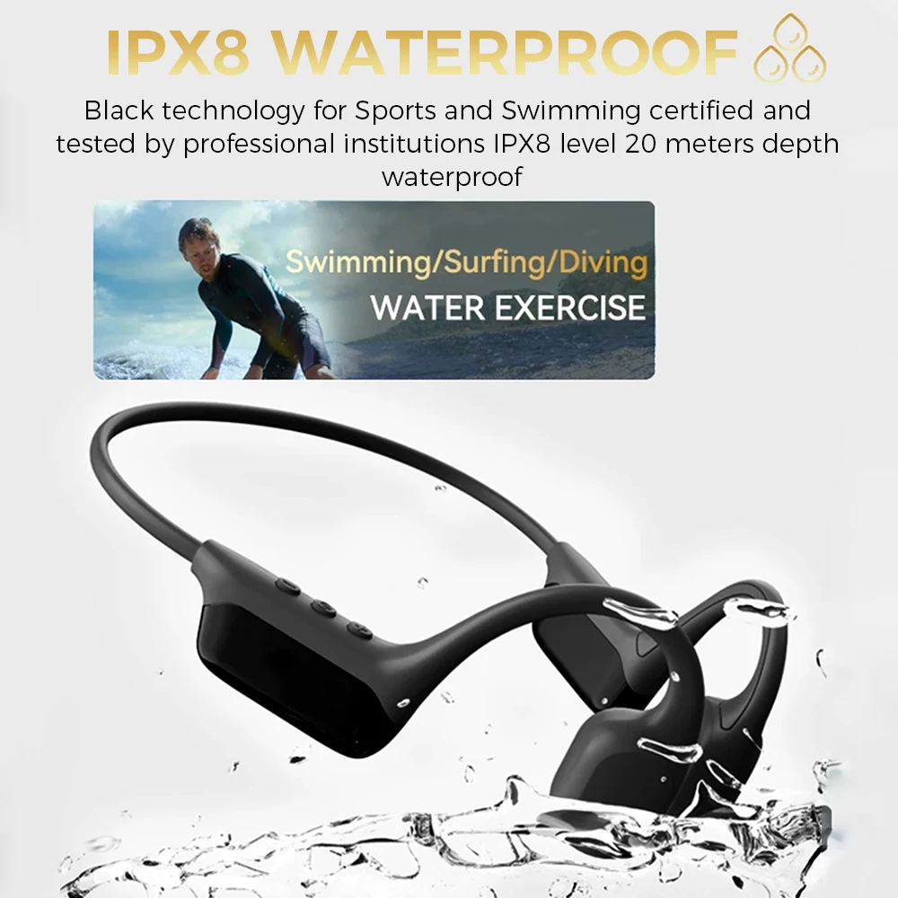 IPX8 waterproof------Excellent waterproof performance, listen to music while swimming, and listen to music while diving.
